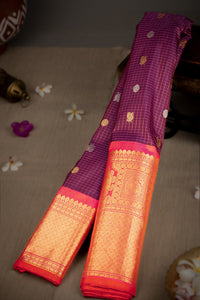 Varamahalakshmi Wine & Peach Pink Gadwal Buttis Saree