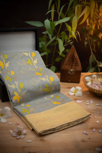 Make a statement at your next event with this beautiful space grey colored Kalamandir sico saree.