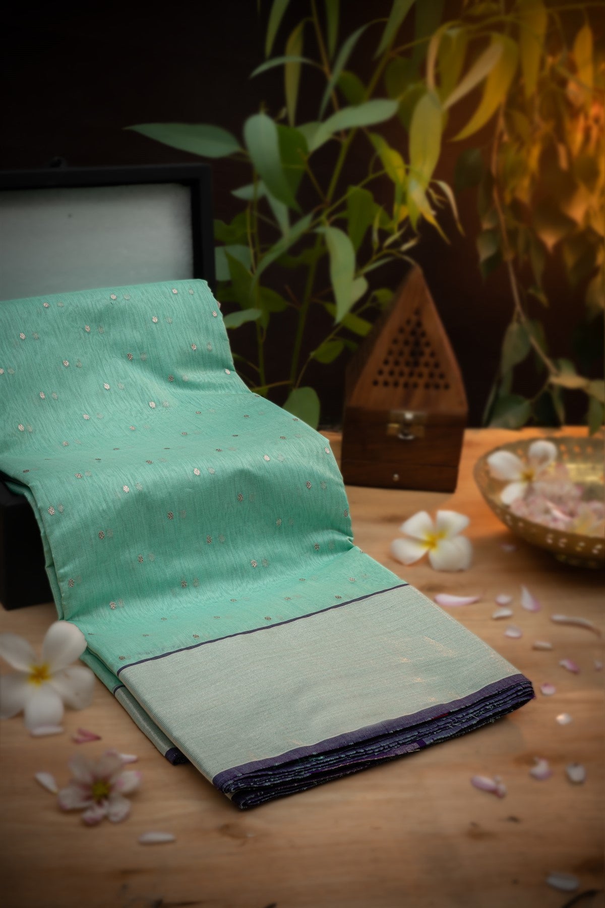 Make a statement at your next event with this beautiful sea green colored Kalamandir sico saree.