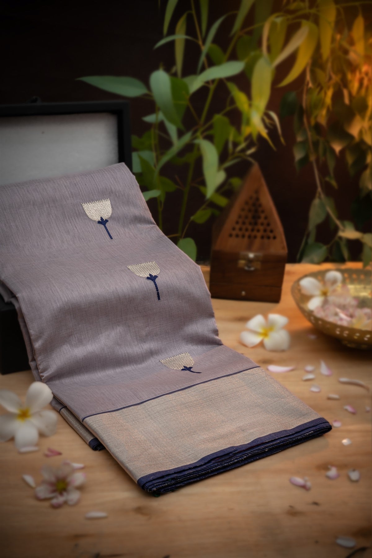 Varamahalakshmi Lavender & Blue Chanderi Motifs Saree