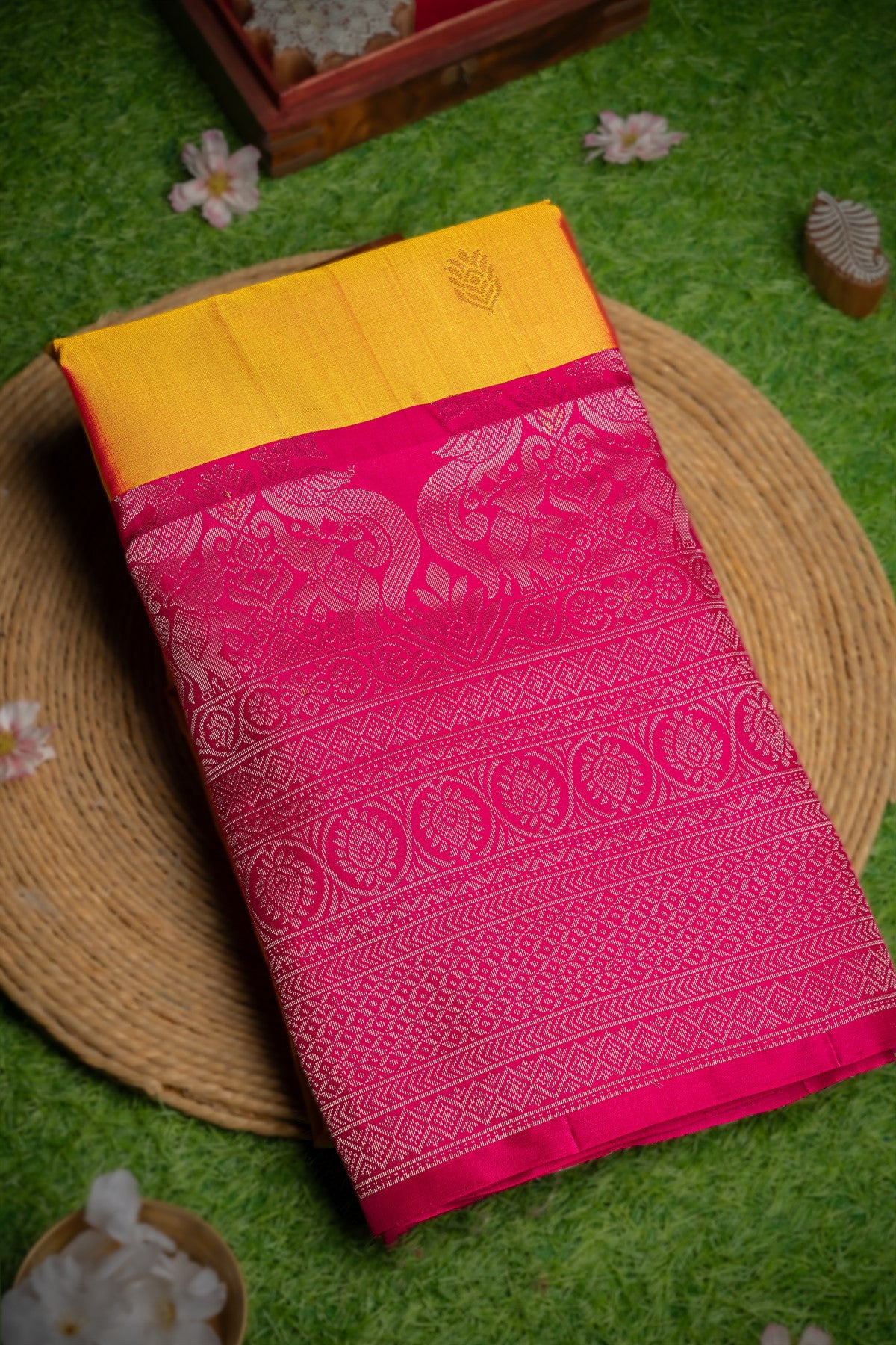 Varamahalakshmi Mustard & Magenta Coimbatore Buttis Saree
