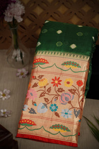 Varamahalakshmi Bottle Green & Red Fancy Buttis Saree