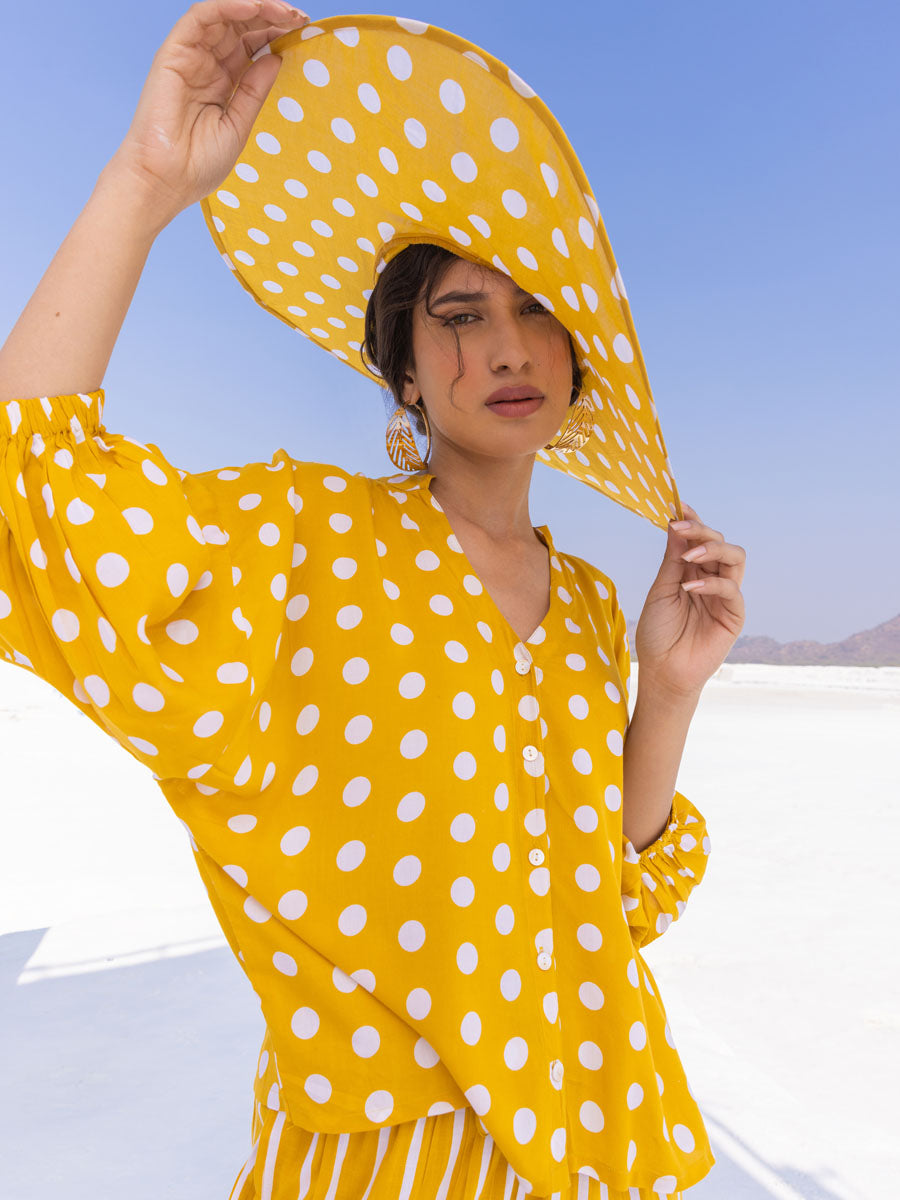 Yellow Polka Cotton Hat